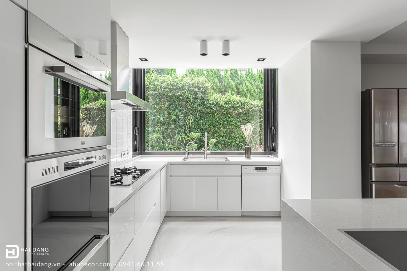 Nội thất phòng bếp với tone màu trắng sang trọng và sạch sẽ